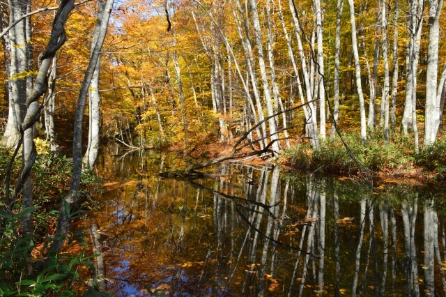 • 鮭が川を上ってくる。